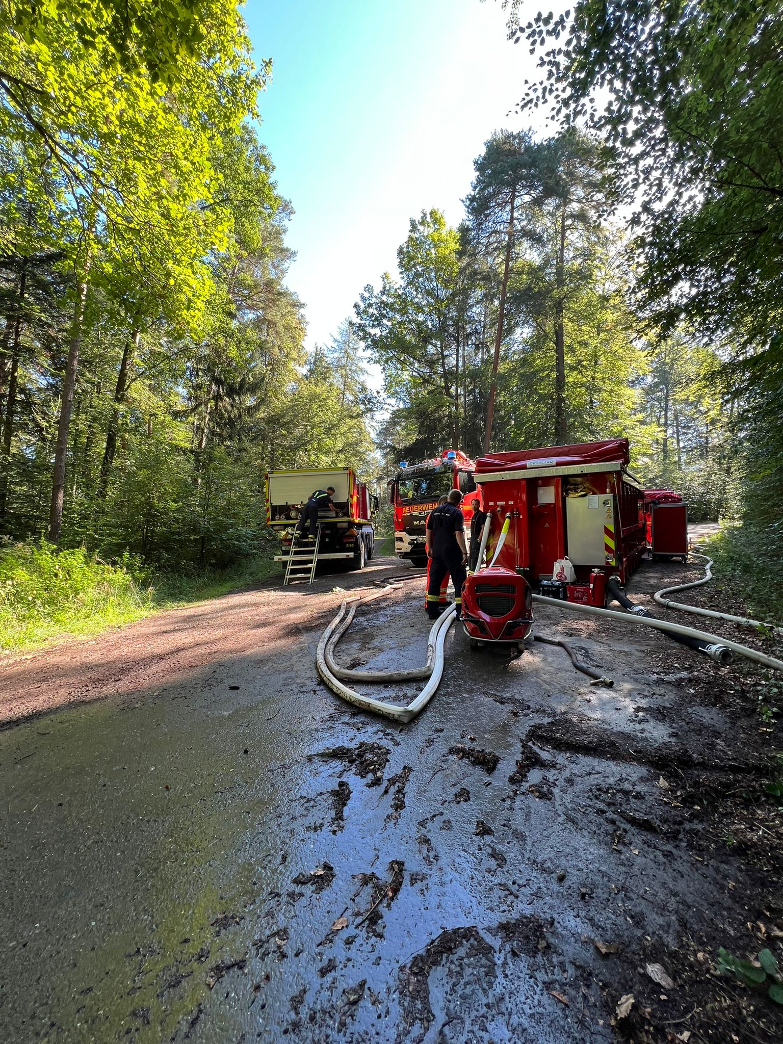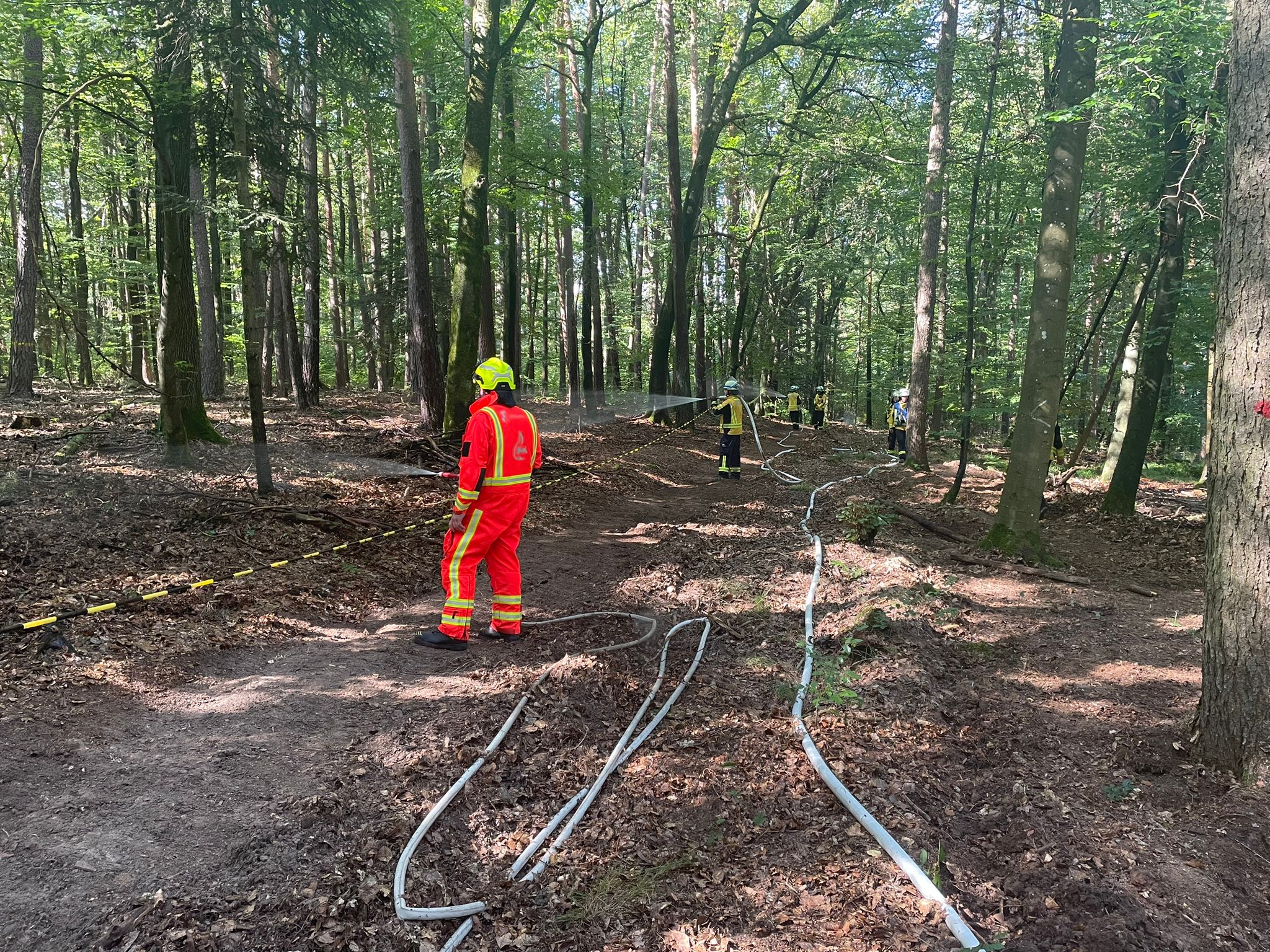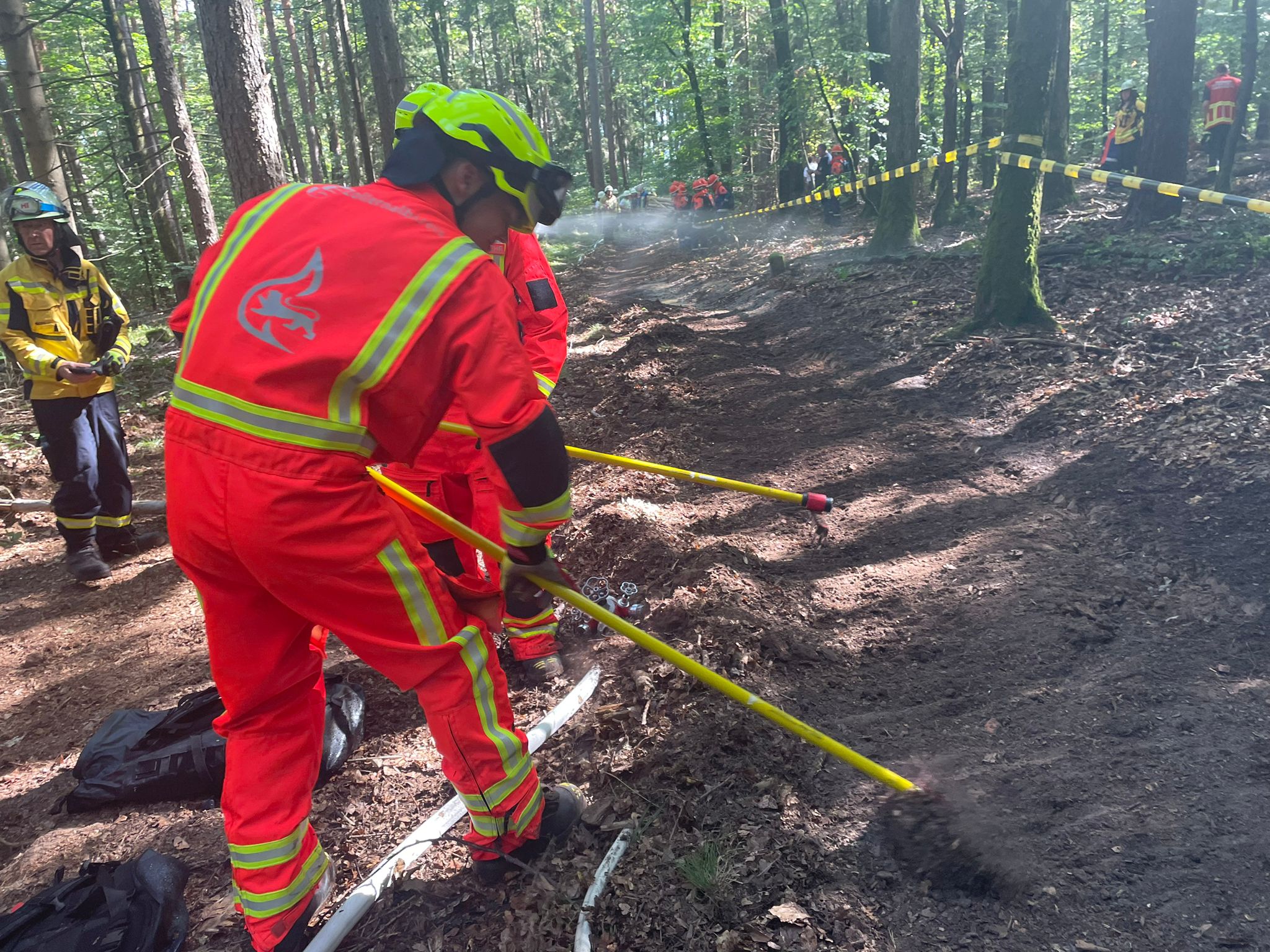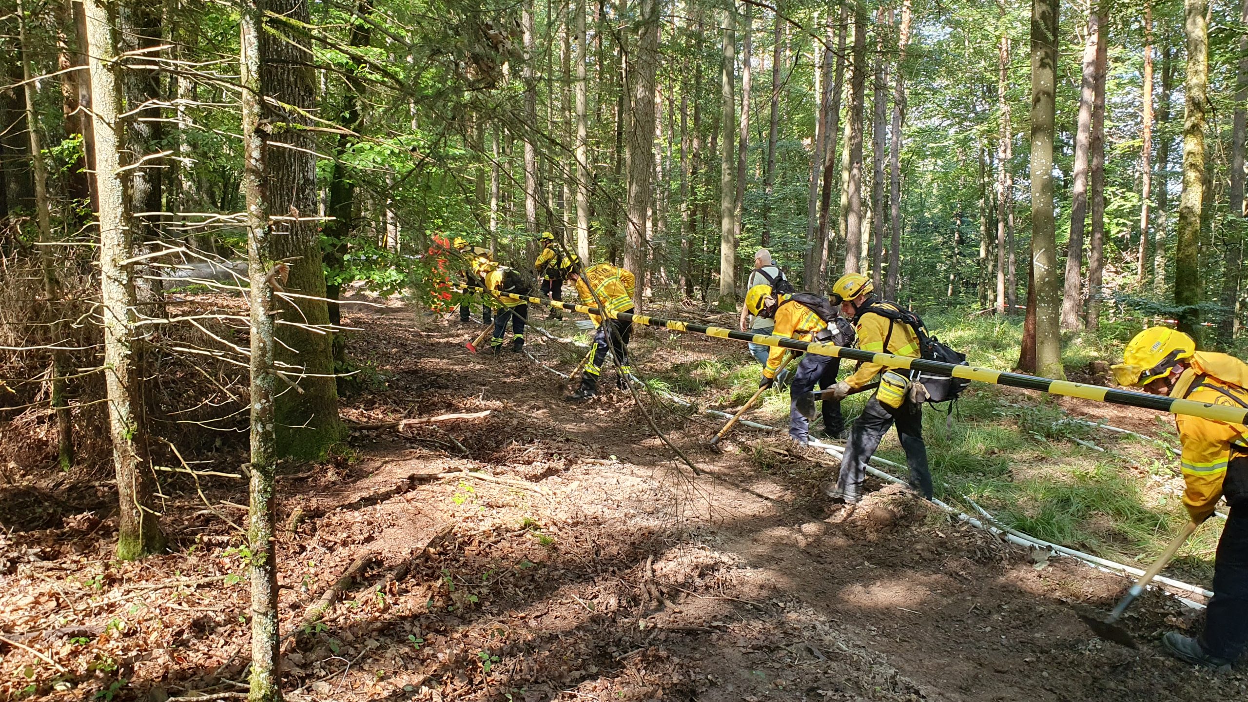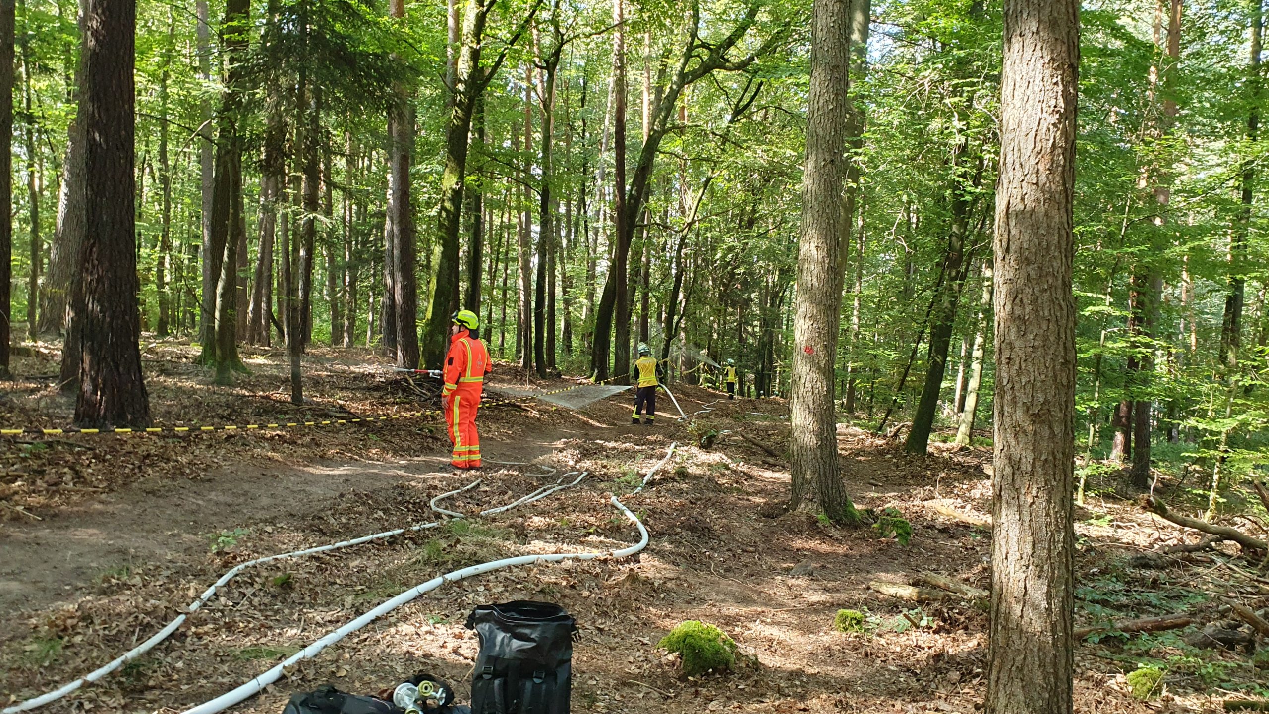 Die Waldbrandübung gestern ist erfolgreich verlaufen. Verschiedene Verfahren wurden geübt und auf Wirksamkeit getestet: